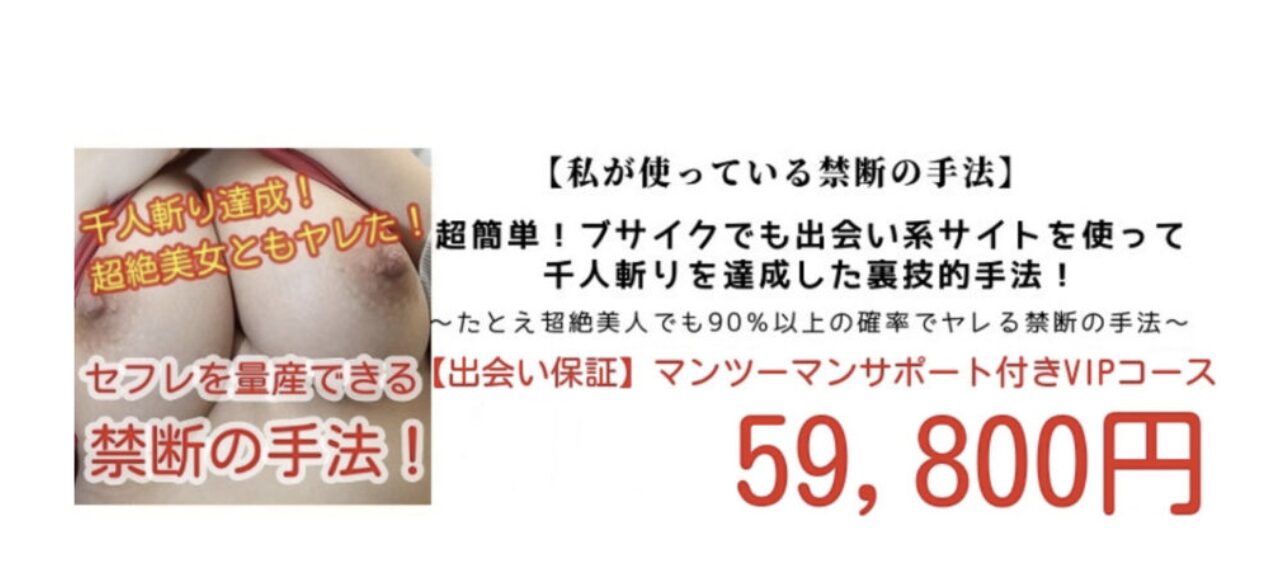 【出会い保証】マンツーマンサポート付きVIPコースはもしマニュアル通りに1年間実践・行動したのにも関わらずセックスができなかった場合、セックスできるまでサポートし続けてくれるコース💪😍