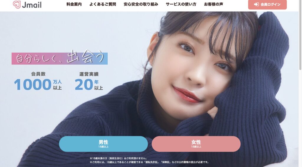 Jメールは(正式にはミントC!Jメール)は2000年頃から運営してる20年以上超の老舗出会い系サービスで